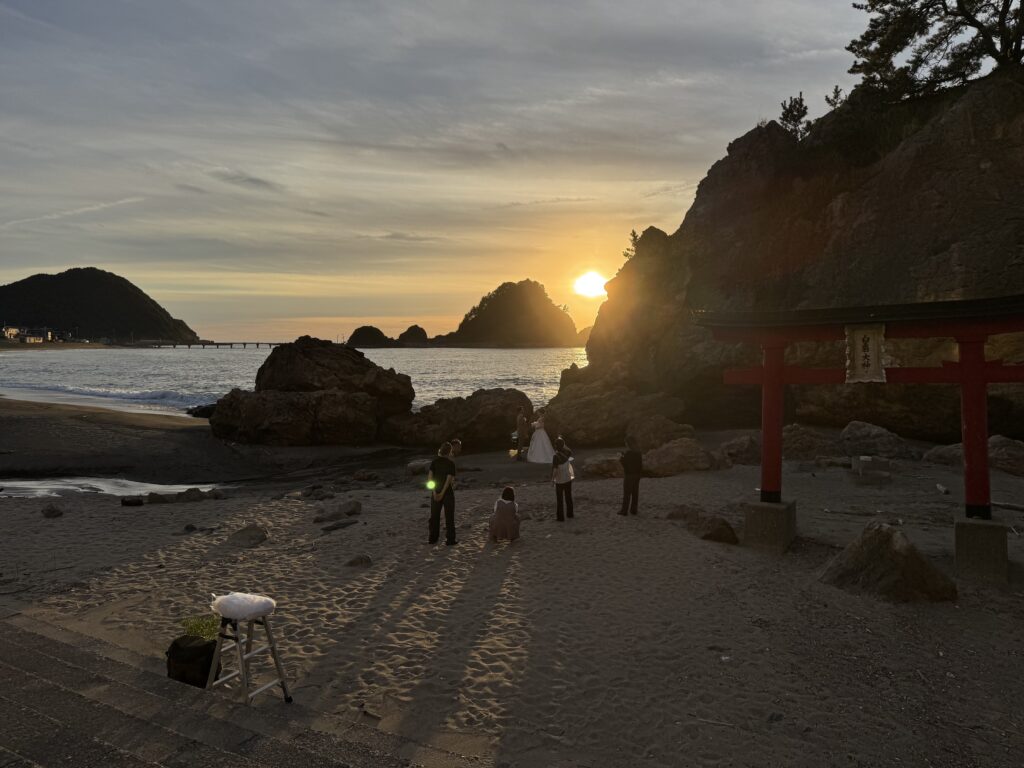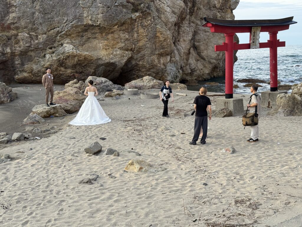 本日は、由良海岸で素敵な撮影風景を見かけたので